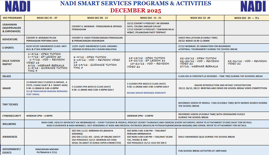 JADUAL AKTIVITI DISEMBER 2025