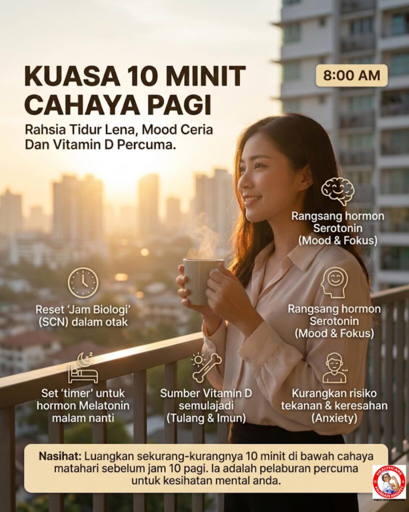 Cara paling berkesan untuk ‘reset’ suis ini setiap hari adalah dengan cahaya matahari pagi, terutamanya sebelum jam 10 pagi.