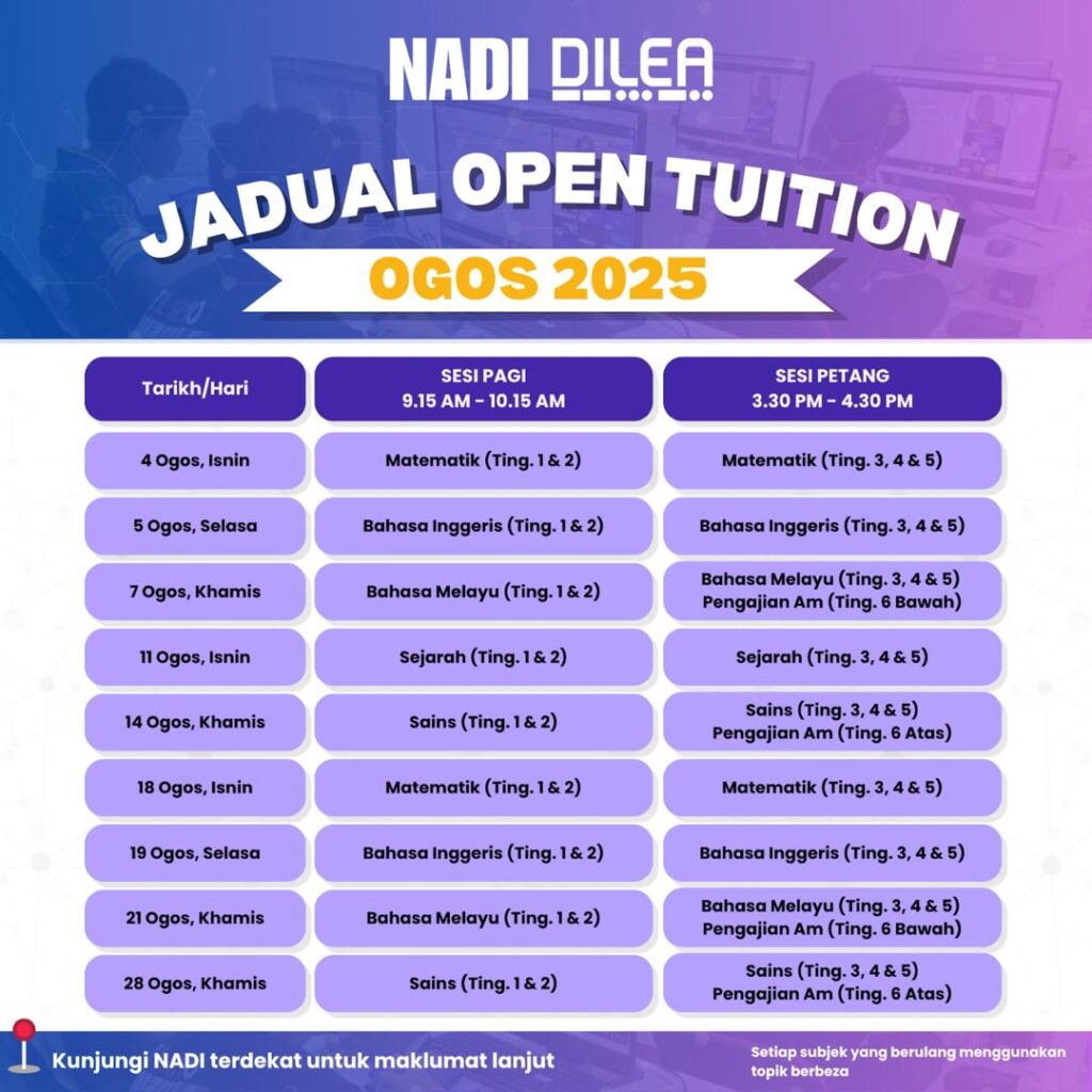 PENDIDIKAN : JADUAL OPEN TUITION OGOS (NADI X DILEA)